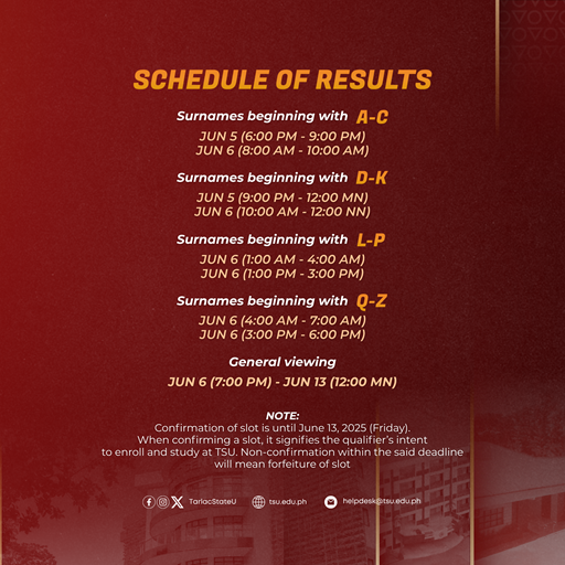 Applicants must follow their schedule (based on initial letter of surname) when viewing the results. Browse the uploaded social media card for details.