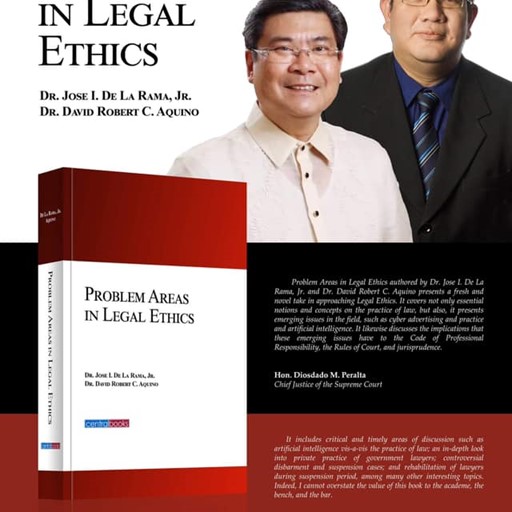 "Problem Areas in Legal Ethics presents a novel take in approaching Legal Ethics. Not only does it cover essential notions and concepts on the practice of law, it also presents emerging issues in the legal field, such as cyber advertising and practice and artificial intelligence,” CJ Peralta said in his foreword.