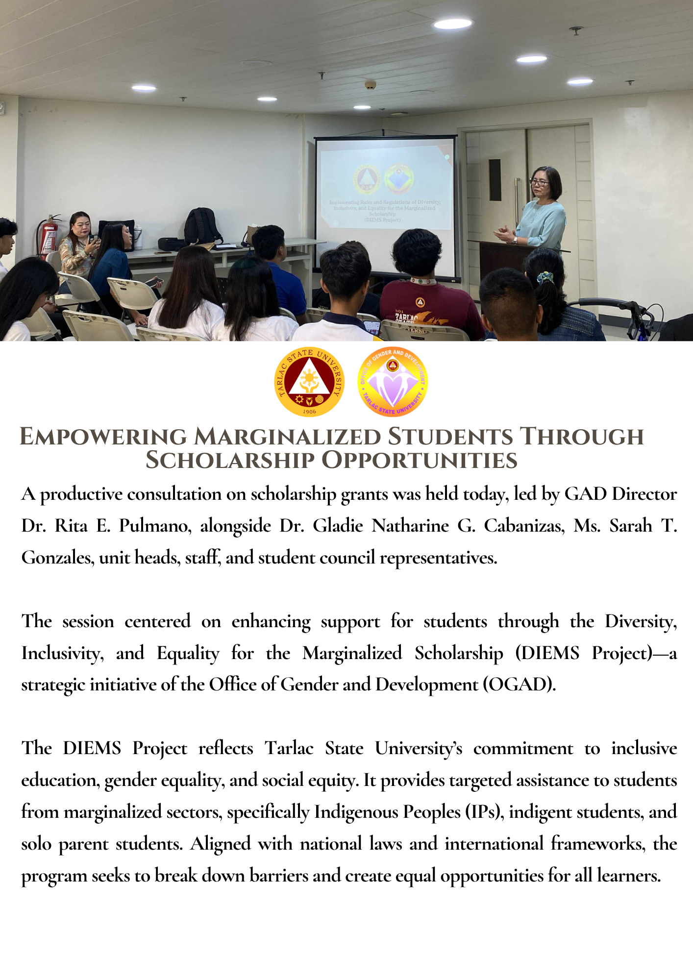 Tarlac State University Launches DIEMS Project for Marginalized Students